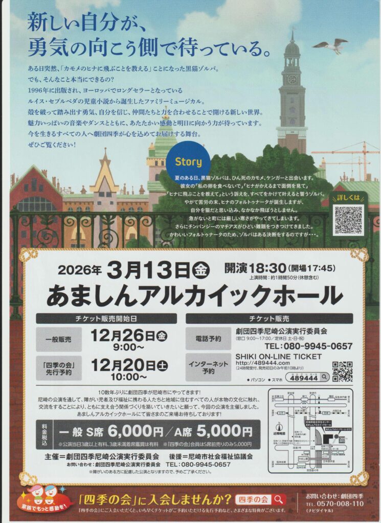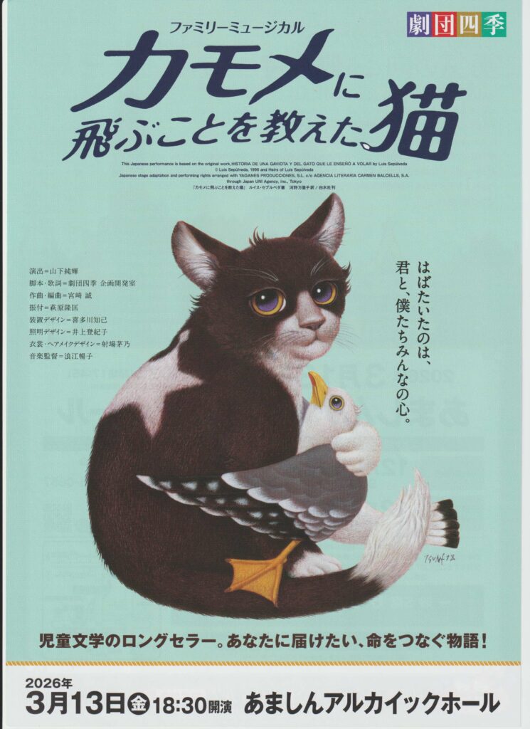 11:00〜劇団四季尼崎公演実行委員 濱田 賢一さん、松井 繁昌さんにお越し頂き3月13日(金)あましんアルカイックホールで公演のファミリーミュージカル「カモメに飛ぶことを教えた猫について」お話しうかます。