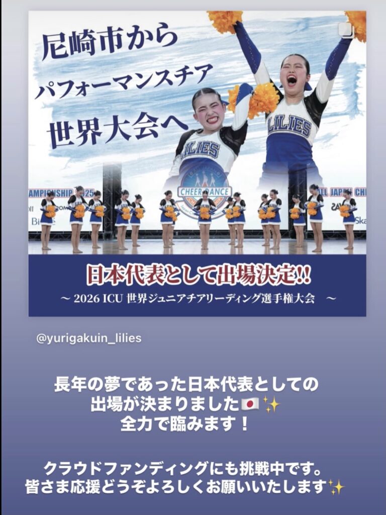 今、百合学院中学校チアダンス部が、日本代表となり世界大会へむけて頑張ってます!